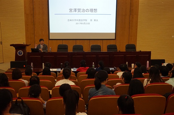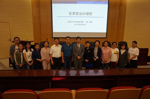 本网讯(通讯员:赵明)9月24日下午,外国语学院联合学校科研处邀请中国日语教学研究会会长、吉林大学外国语学院院长、教授、博士生导师周异夫教授在校学术报告厅为威尼斯官网师生开展“亚洲共同体”系列学术讲座第四讲——“宫泽贤治的理想”学术报告。科研处副处长张帆、外国语学院执行院长邵玲及日语系全体师生共计一百余人出席聆听。本场讲座由日语系系主任宋志强主持。