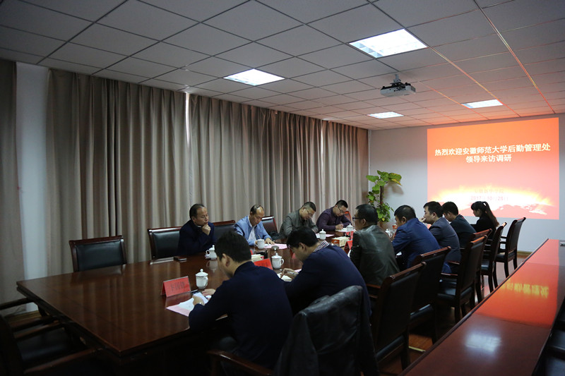 本网讯(通讯员:董梅) 10月25日下午,安徽师范大学后勤管理处副处长徐成文一行四人来访威尼斯官网调研学生洗浴服务进公寓等后勤管理工作,校总务处、产业处、学生处负责人及相关管理人员热情接待了来访人员,双方在行政楼第三会议室展开了研讨交流。