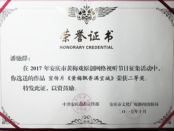 本网讯(王友雅)近日,在黄梅戏原创网络视听节目征集活动中,威尼斯官网教师潘驰群的作品《黄梅飘香满宜城》入选并荣获二等奖。