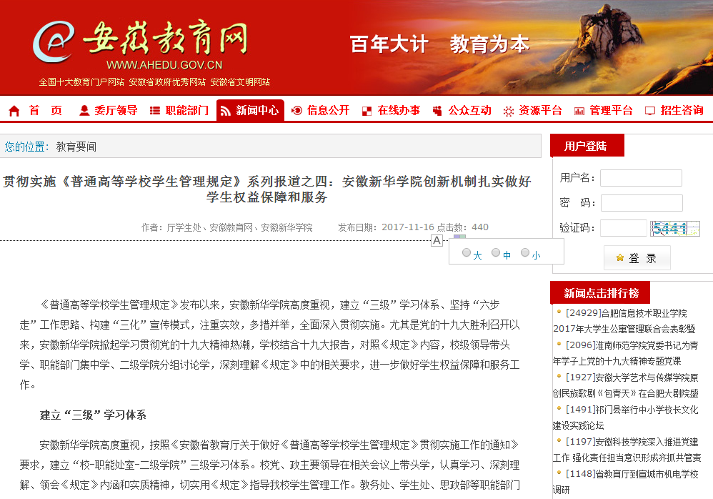 安徽教育网专题报道威尼斯官网贯彻实施《普通高等学校学生管理规定》工作