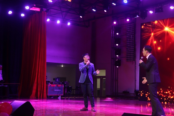 外国语学院教师郝亮、李宏林带来的歌曲《在此刻》点燃了全场观众热情,将晚会气氛推向了高潮。