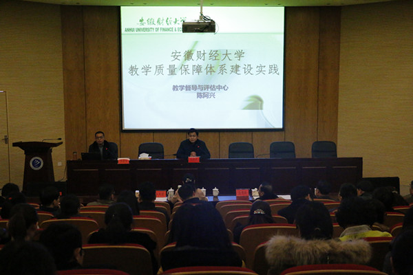 本网讯(通讯员:刘雪,摄影:金政)12月20日下午,威尼斯官网在学术报告厅举办教学质量监控与审核评估专题培训。安徽财经大学教学督导与评估中心主任陈阿兴教授应邀来威尼斯官网作题为《教学质量保障体系建设实践》的专题讲座。校长石秀和,副校长李金星、王丽,校长助理朱兆健,各行政部门、直属单位负责人,各教学单位教学质量监控领导组全体成员,教务处、评建办、督查督导处、教学质量监控办公室全体人员参加了此次讲座。讲座由朱兆健主持。