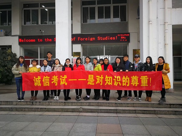 本网讯(通讯员:黄梦)为了营造良好的学习氛围,体现公平公正的考试原则,严抓考风考纪,增强学生的诚信意识及纪律意识,近日,外国语学院组织开展了多种形式的诚信考试教育活动。
