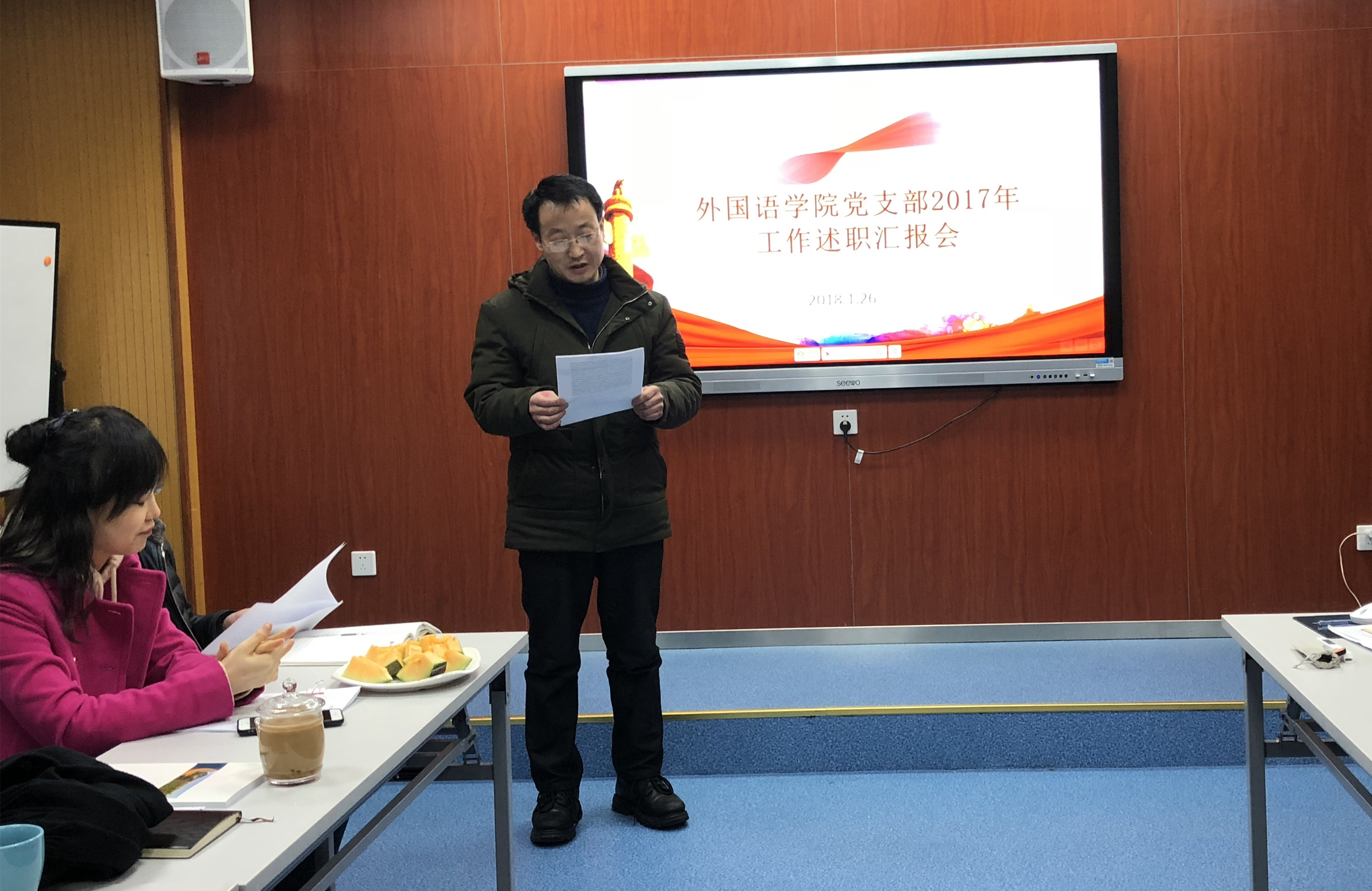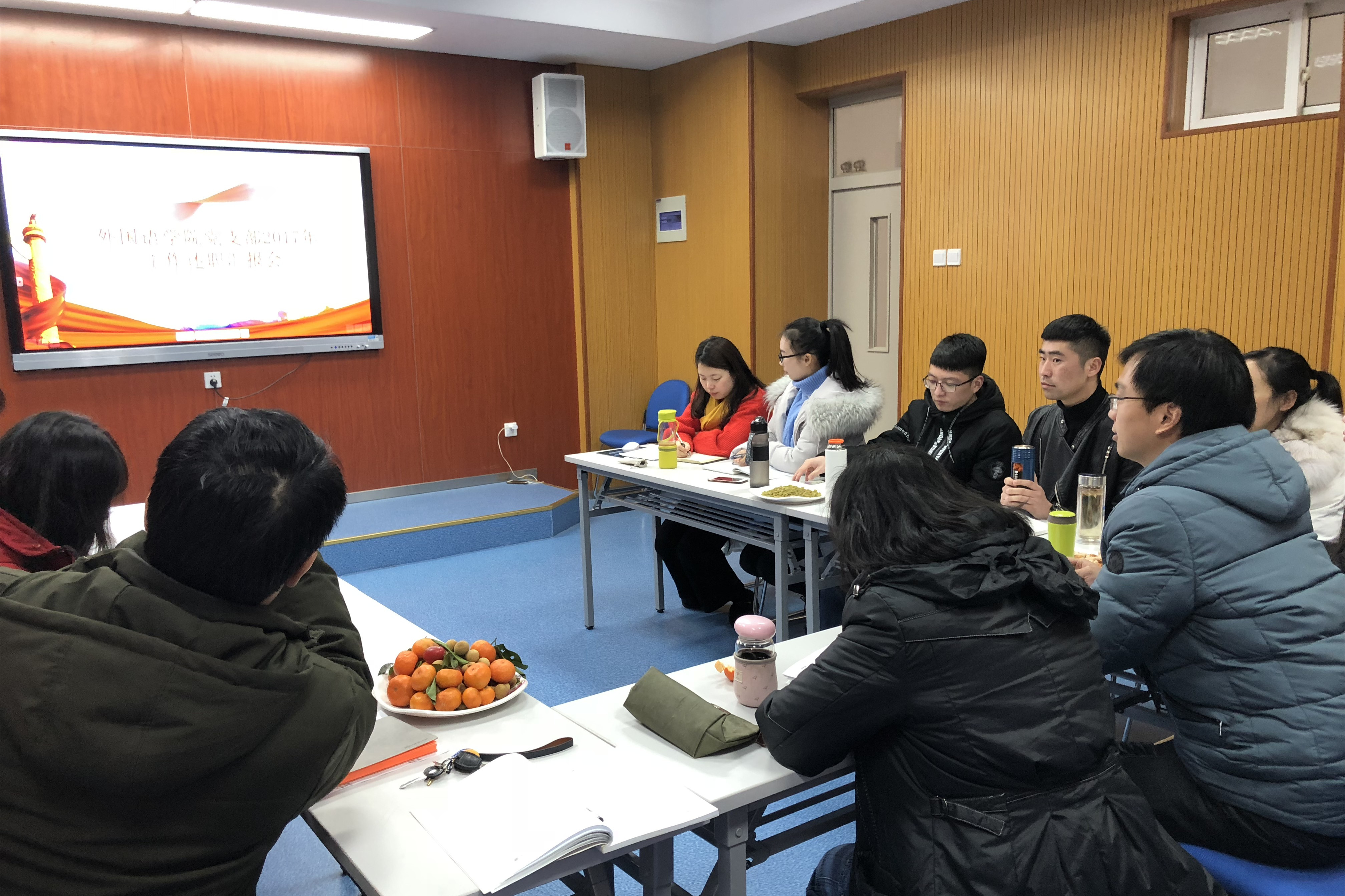本网讯(通讯员:郝亮)为深入贯彻落实党的十九大会议精神,进一步加强基层党组织建设,交流各支部工作经验,1月26日,外国语学院党总支召开2017年度支部书记党建工作述职汇报会。外国语学院党总支成员及各支部书记参会,会议由党总支副书记周景主持。