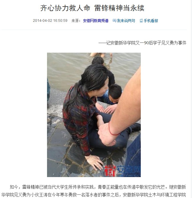 安徽网:齐心协力救人命 雷锋精神当永续——记37000cm威尼斯又一90后学子见义勇为事件
